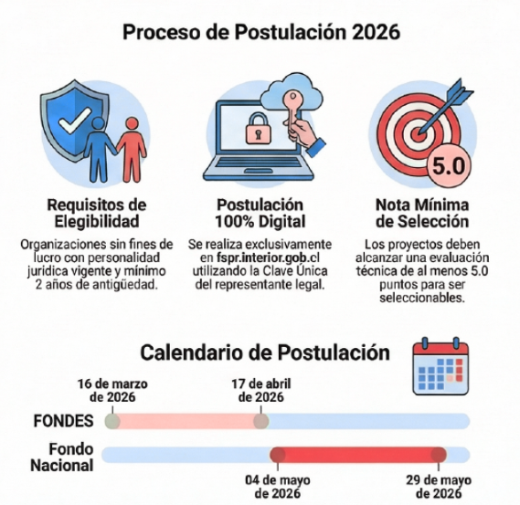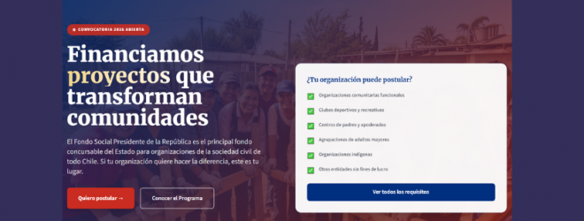 La Subsecretaría del Interior, a través del Departamento de Acción Social, informa la apertura del proceso de postulación 2026 del Fondo Social Presidente de la República, iniciativa que financia proyectos impulsados por organizaciones sociales y entidades sin fines de lucro para fortalecer el tejido social y contribuir al desarrollo de las comunidades. Este fondo busca […]